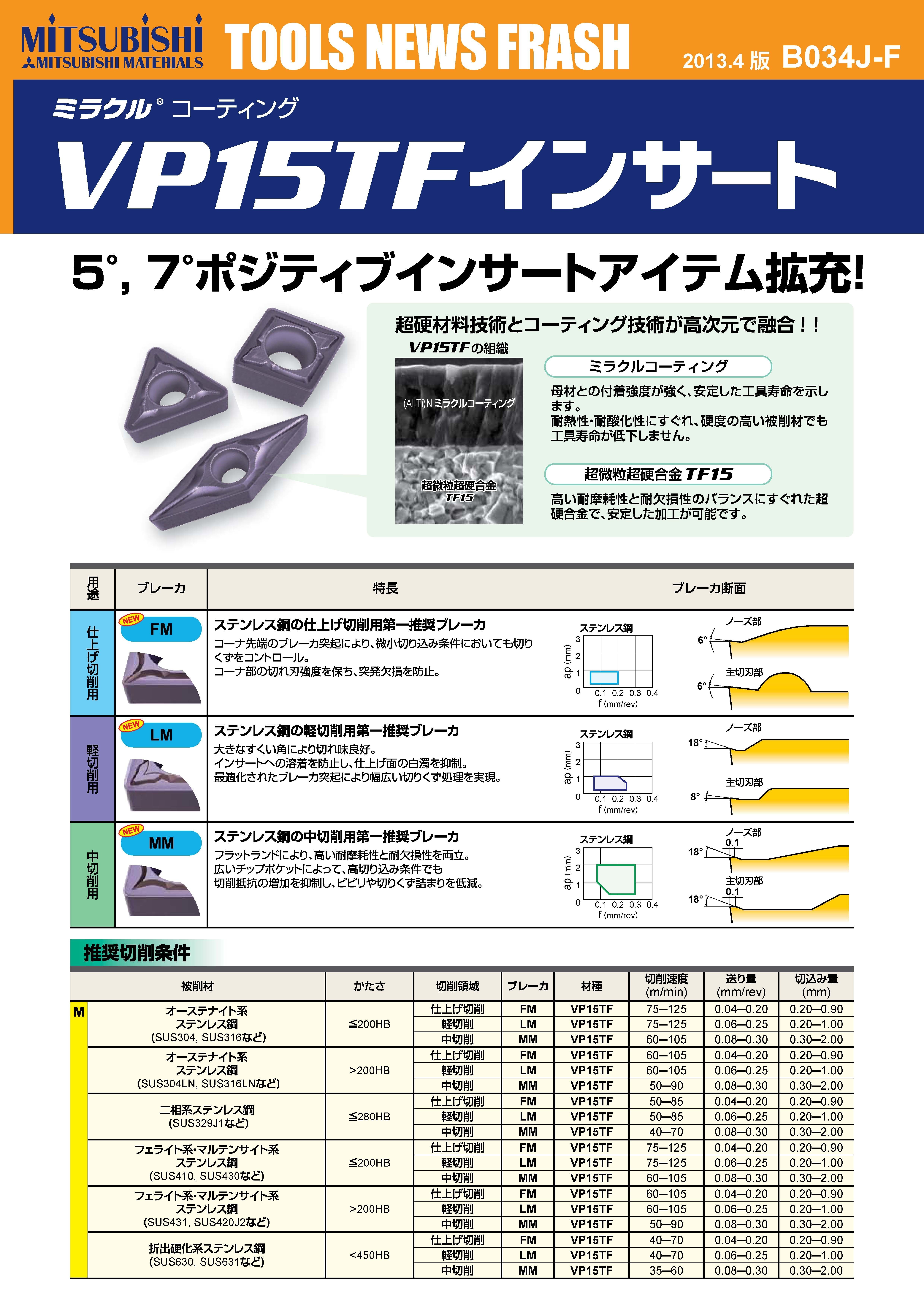 VP15TFはあらゆる加工に対応できると広く市場に認められているPVDコーティング超硬材種です。