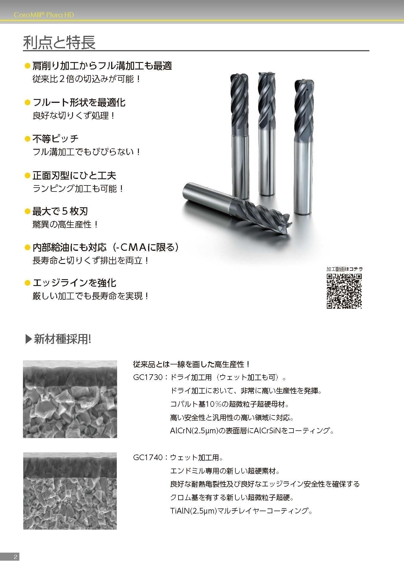 *従来比切込み2倍! *内部給油により、切りくず排出良好 *フル溝加工、肩削り加工やランピングまで多彩な加工が可能 *最大5枚刃で、更なる高生産性を実現 *ウェルドンシャンクの追加で、エンドミルの抜け防止(CoroChuck® 930との組合せで)