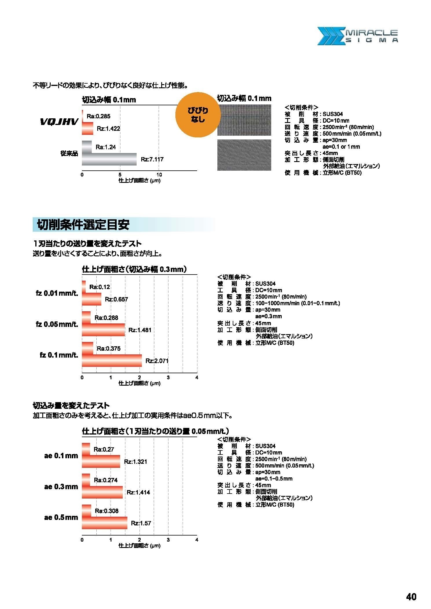 難削材加工用“SMART MIRACLE”エンドミルシリーズは、耐摩耗性の大幅な向上と切削抵抗の低減、切りくず排出性を大幅に向上させた(Al,Cr)N系コーティングの採用により、チタン合金・耐熱合金などの加工において、加工能率と工具寿命延長を実現し。難削材加工での摩耗特性や加工形態に対応した独自の切れ刃形状の採用により、耐欠損性を向上し安定した高能率加工を実現。
