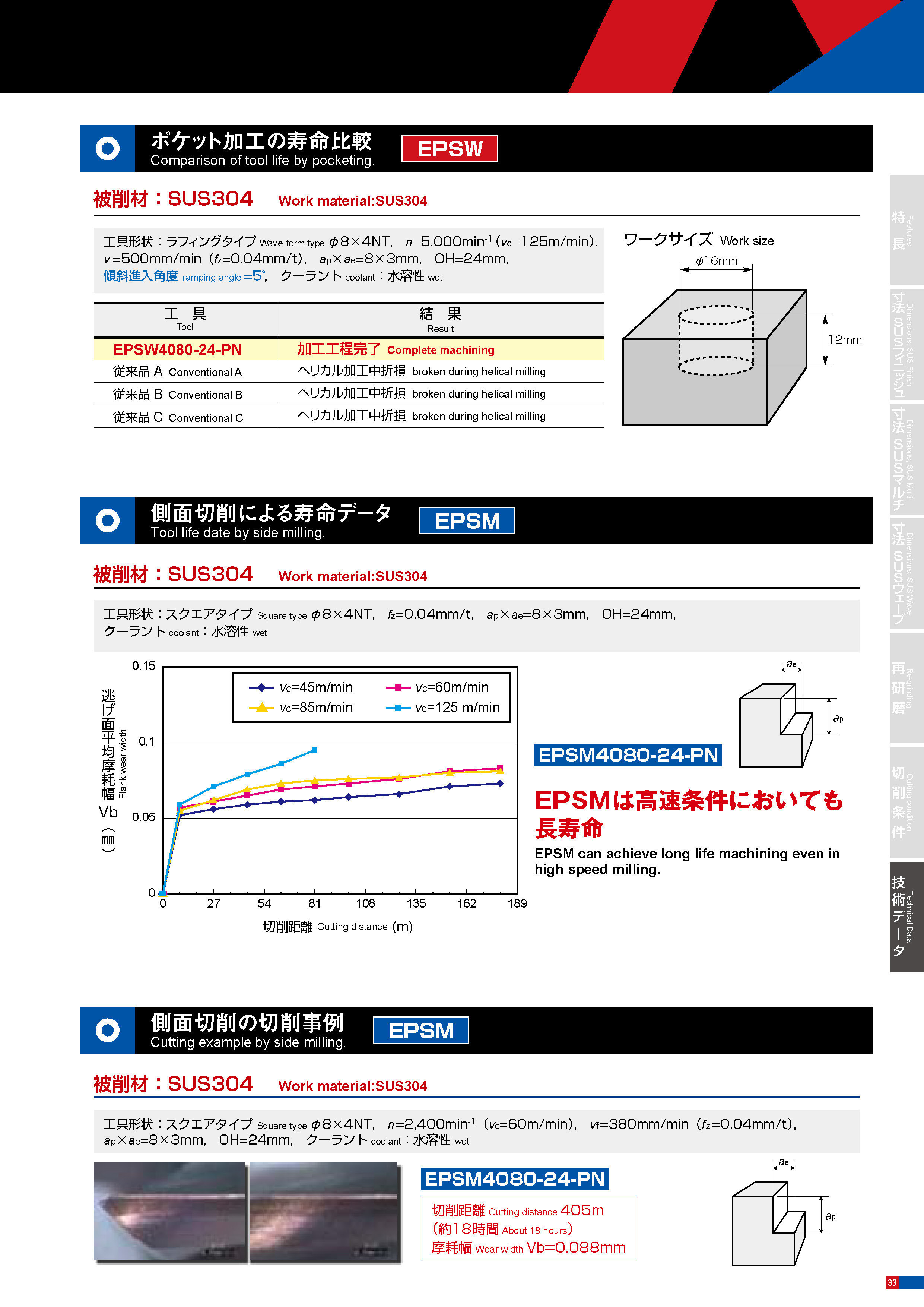 豊富なラインナップ 荒から仕上げ加工まで様々な加工に対応 ・不等分割形状による振動抑制効果 ・2段ギャッシュ(底刃ポケット)によるスムーズな切りくず排出 ・ダブルエキセンによる耐チッピング性・耐摩耗性の向上 ・最適外周刃溝形状によるスムーズな切りくず排出 ・PNコーティングによる耐摩耗性の向上
