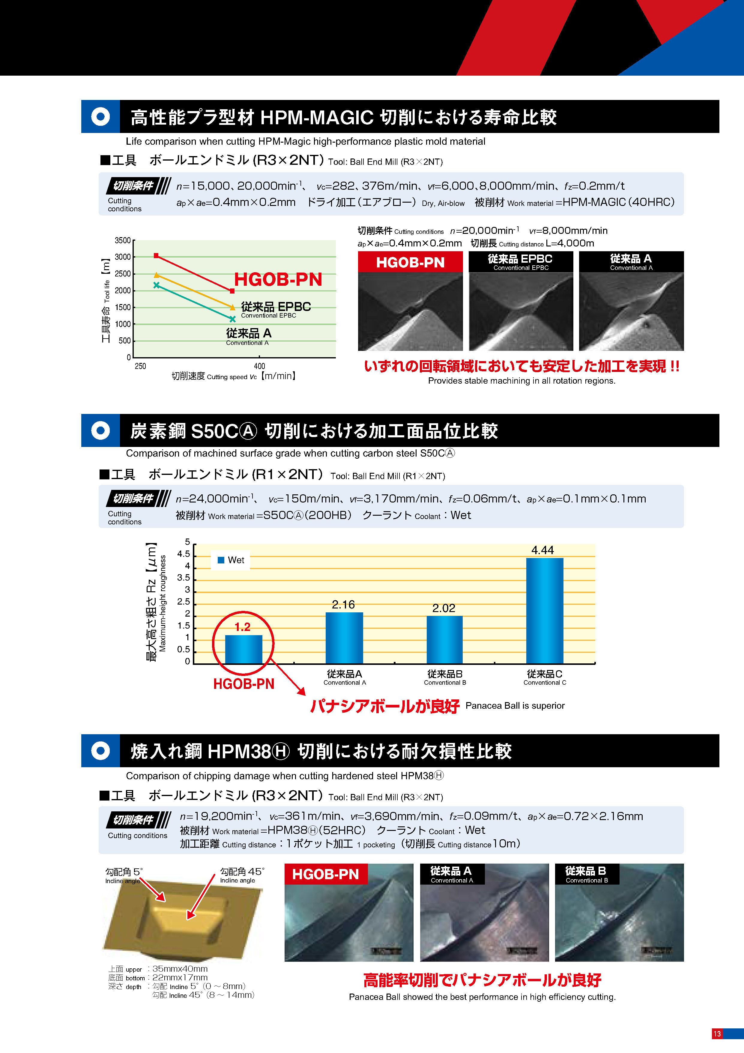 ・2枚刃,4枚刃スクエア、2枚刃ボール刃で幅広い被削材に対応